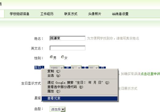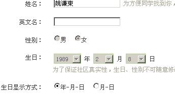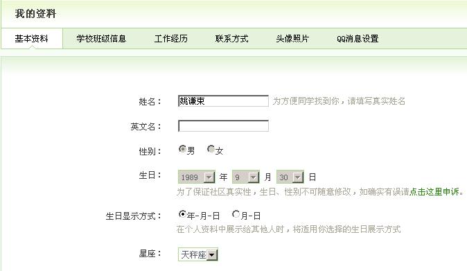上了下QQ校友,无意中发现生日那行填的是自己真实的生日(下图只是演示,明显不是我真实生日)