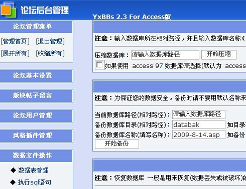 应该是BBS吧,进去看了看,是刚弄的,都没会员,帖子总共也就一两张帖子!这样的论坛最好了,因为管理员的账号密码很有可能是默认的,看了下底下版权Powered By:YxBBs V2.3.0,边上百度查YxBBs的信息,边试了下admin admin888和admin admin,人品不错~admin admin就这样进去了,后台也是admin admin。